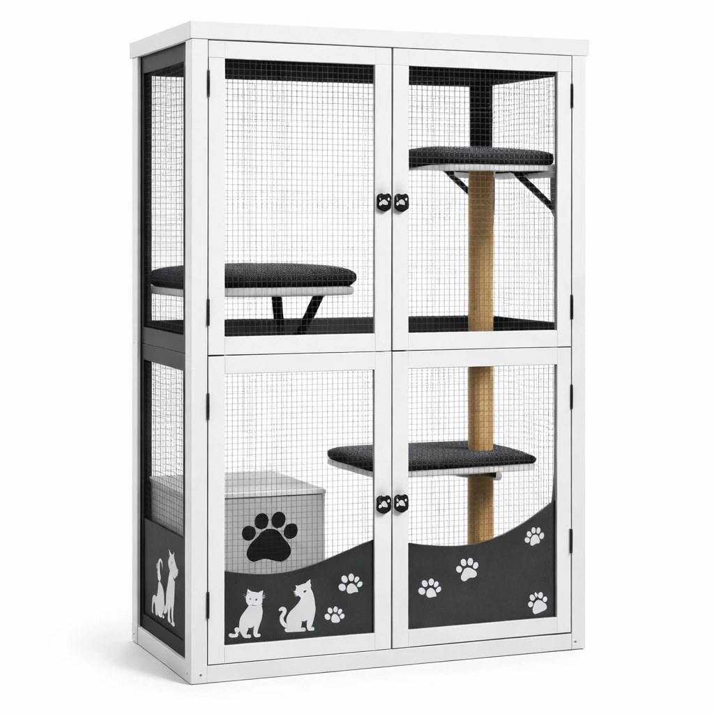 Jaula para gatos blanca de MDF y hierro 80x50x150 cm