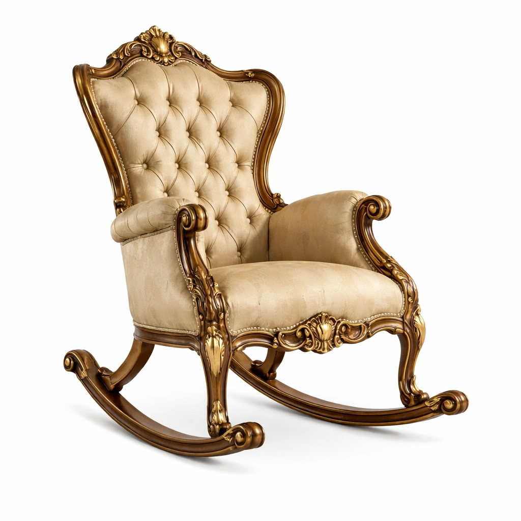 Mecedora de cuero sintético negro con estructura de madera y metal