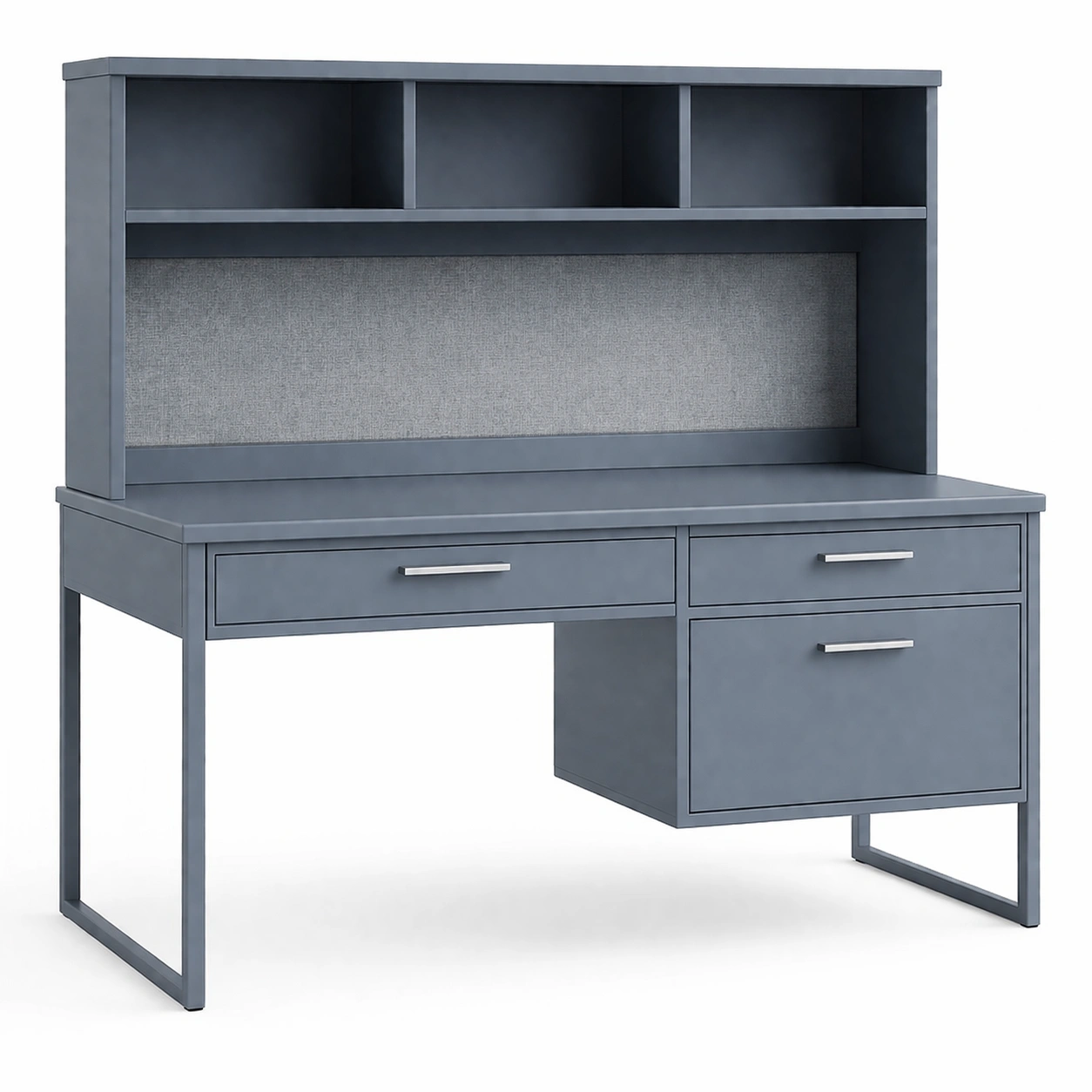 Estructura: 1 escritorio con 3 cajones y estante superior.